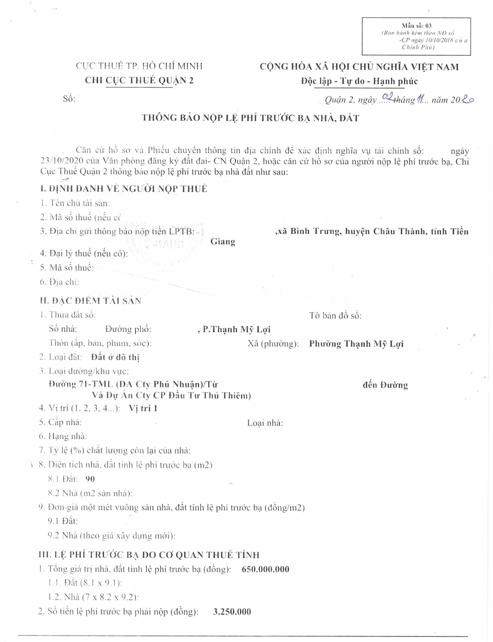 Địa chỉ tài sản: Đường 71 - Nguyễn Văn Kỉnh, Phường Thạnh Mỹ Lợi, Phường Thạnh Mỹ Lợi, Quận 2, Hồ Chí Minh