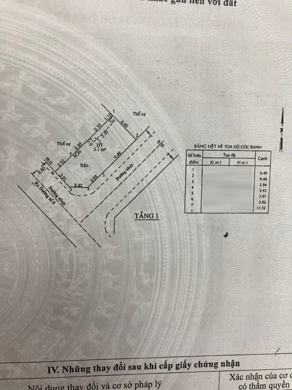 *Diện tích đất công nhận: 97.4m2. Ngang 6.4m x Dài 15.4m