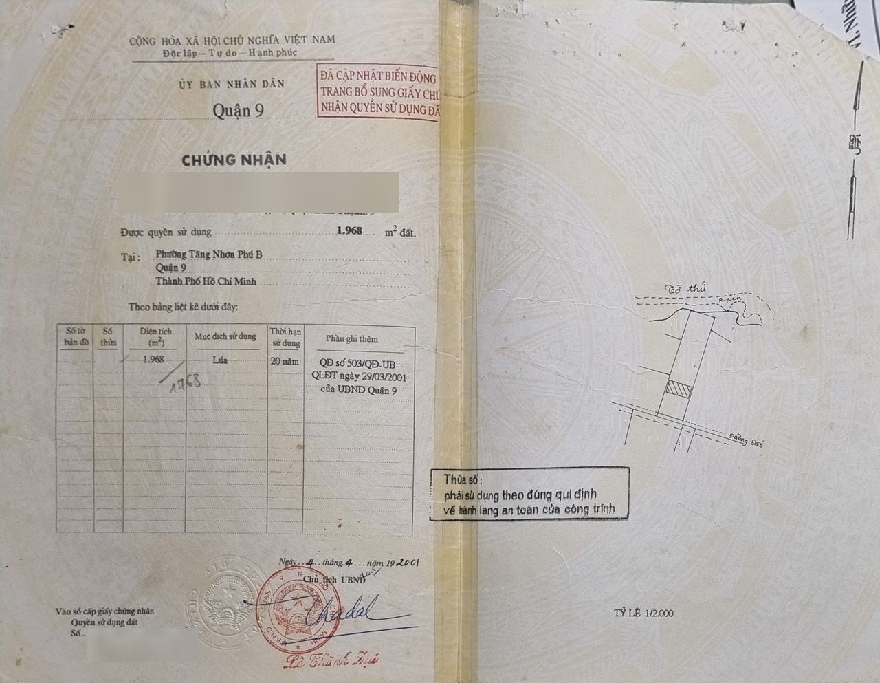 *Diện Tích đất công nhận: 1968m2 ngang 20m x dài 98.4m