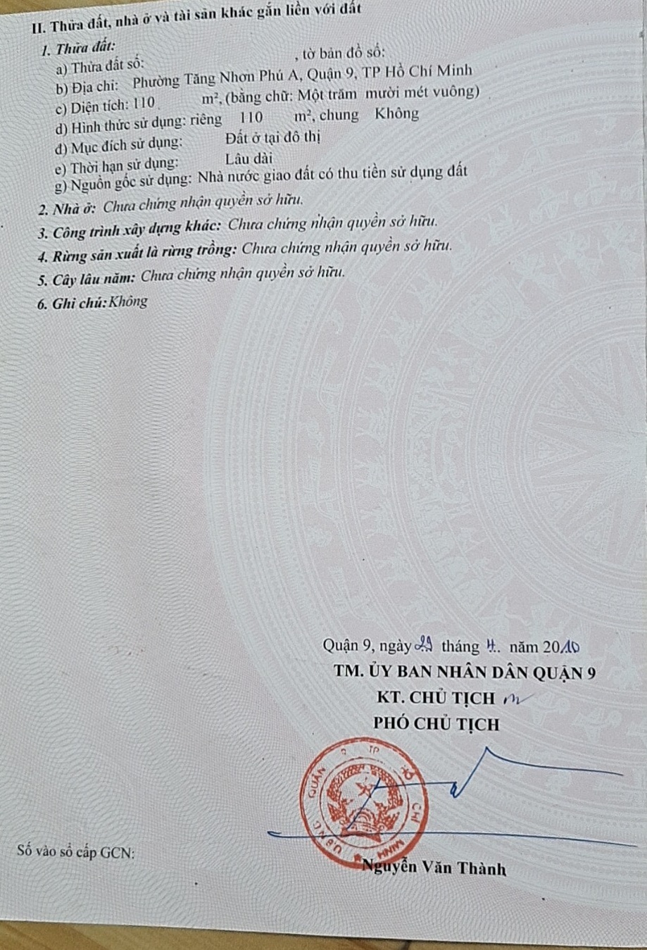 Địa chỉ tài sản: đường D2, Man Thiện, Tăng Nhơn Phú A., Phường Tăng Nhơn Phú A, Quận 9, Hồ Chí Minh