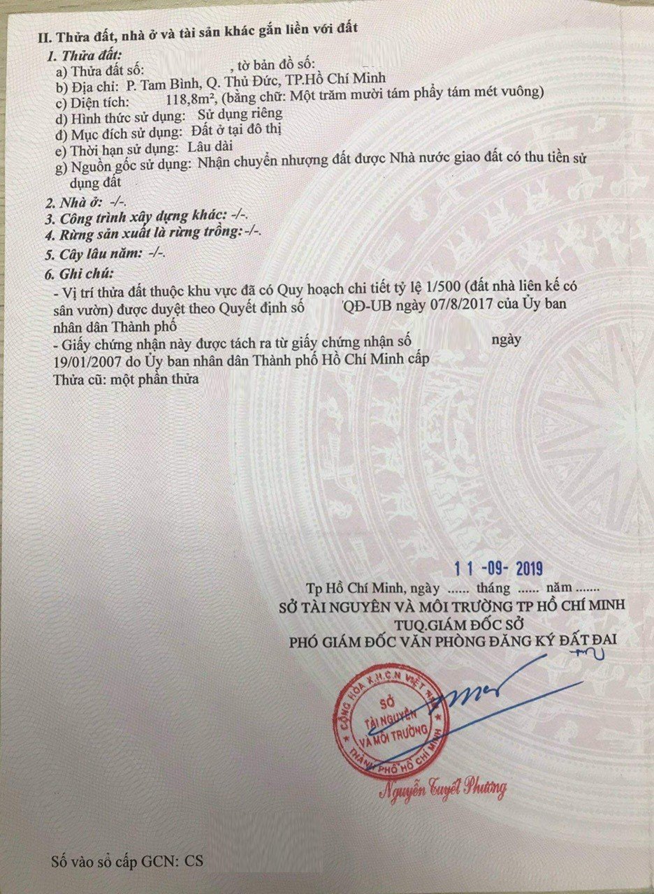 Địa chỉ tài sản: đường D3, Phường Tam Binh, Phường Tam Bình, Quận Thủ Đức, Hồ Chí Minh