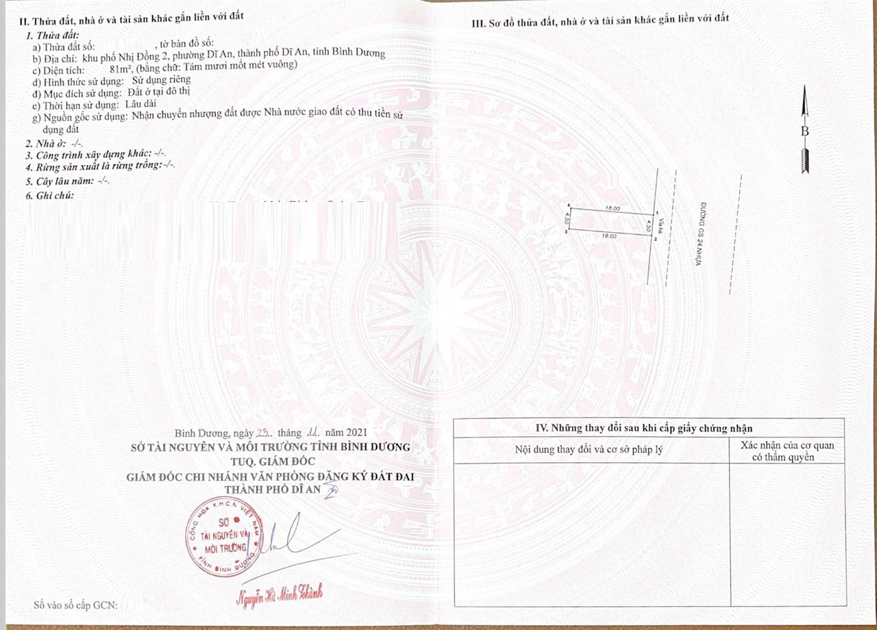 Địa chỉ tài sản: đường GS24, Phường Dĩ An, Phường Dĩ An, Thị xã Dĩ An, Bình Dương