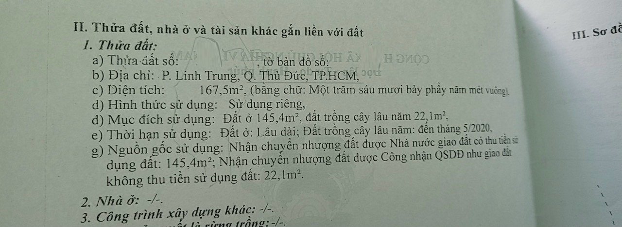 *Diện tích đất công nhận: 167.5m2. Ngang 5.15m x Dài 32m. ODT: 145.4m2, CLN: 22.1m2