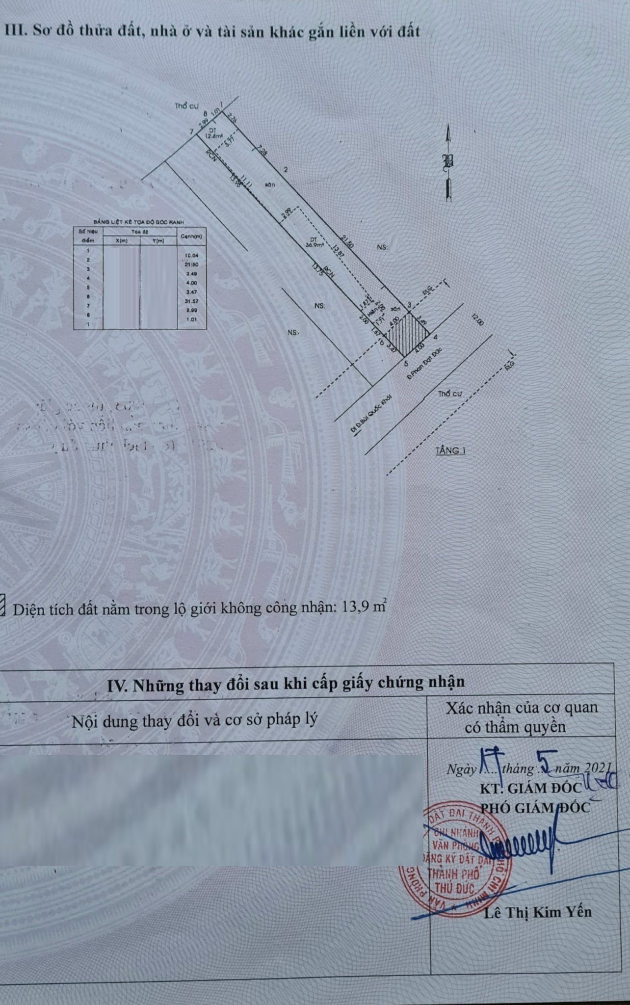 *Diện tích đất công nhận: 126.2m2. Ngang 4m x Dài 21.5m.