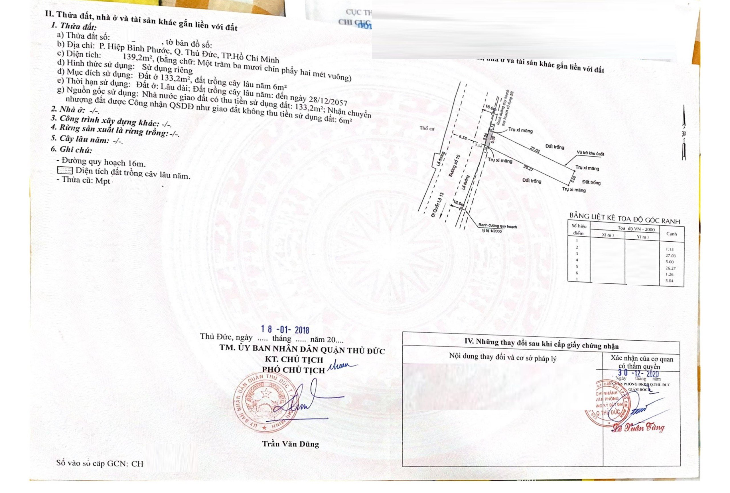 *Diện tích đất công nhận: 139.2m2. Ngang 5.04m x Dài 28m. ODT: 133.2m2, CLN: 6m2.