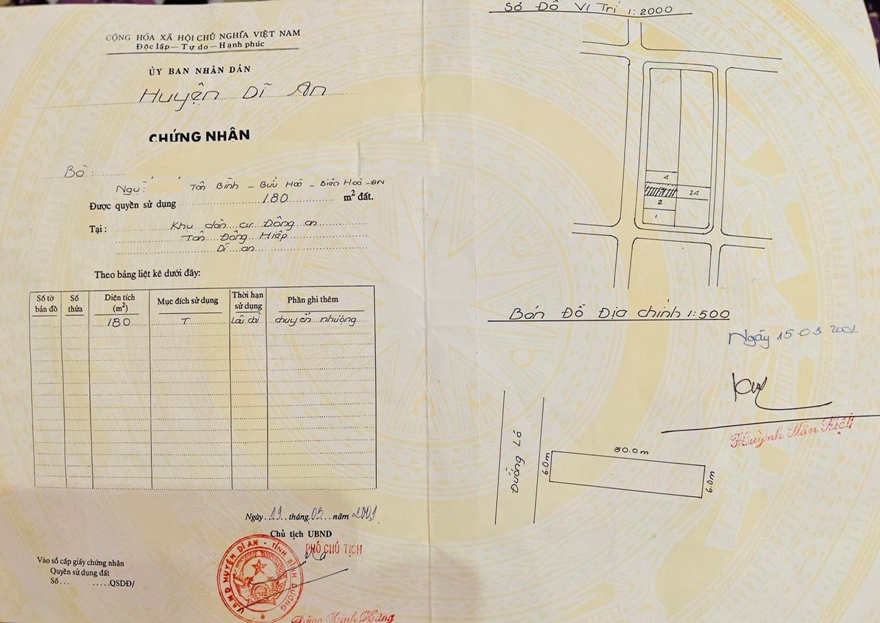 *Diện Tích đất công nhận: 180m2 (ngang 6m x dài 30m)