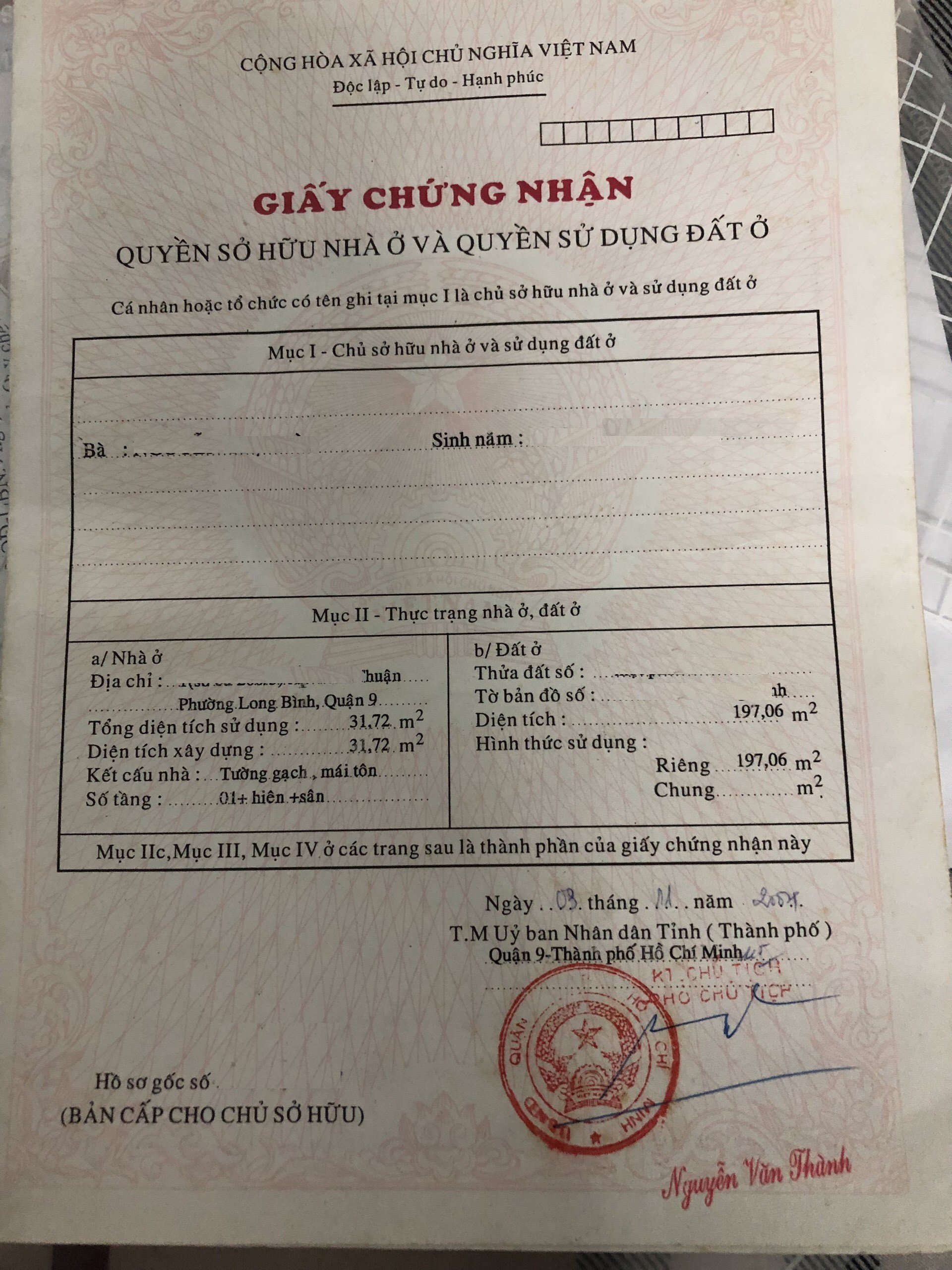 Địa chỉ tài sản: Đường Hoàng Hữu Nam, Phường Long Bình, Phường Long Bình, Quận 9, Hồ Chí Minh