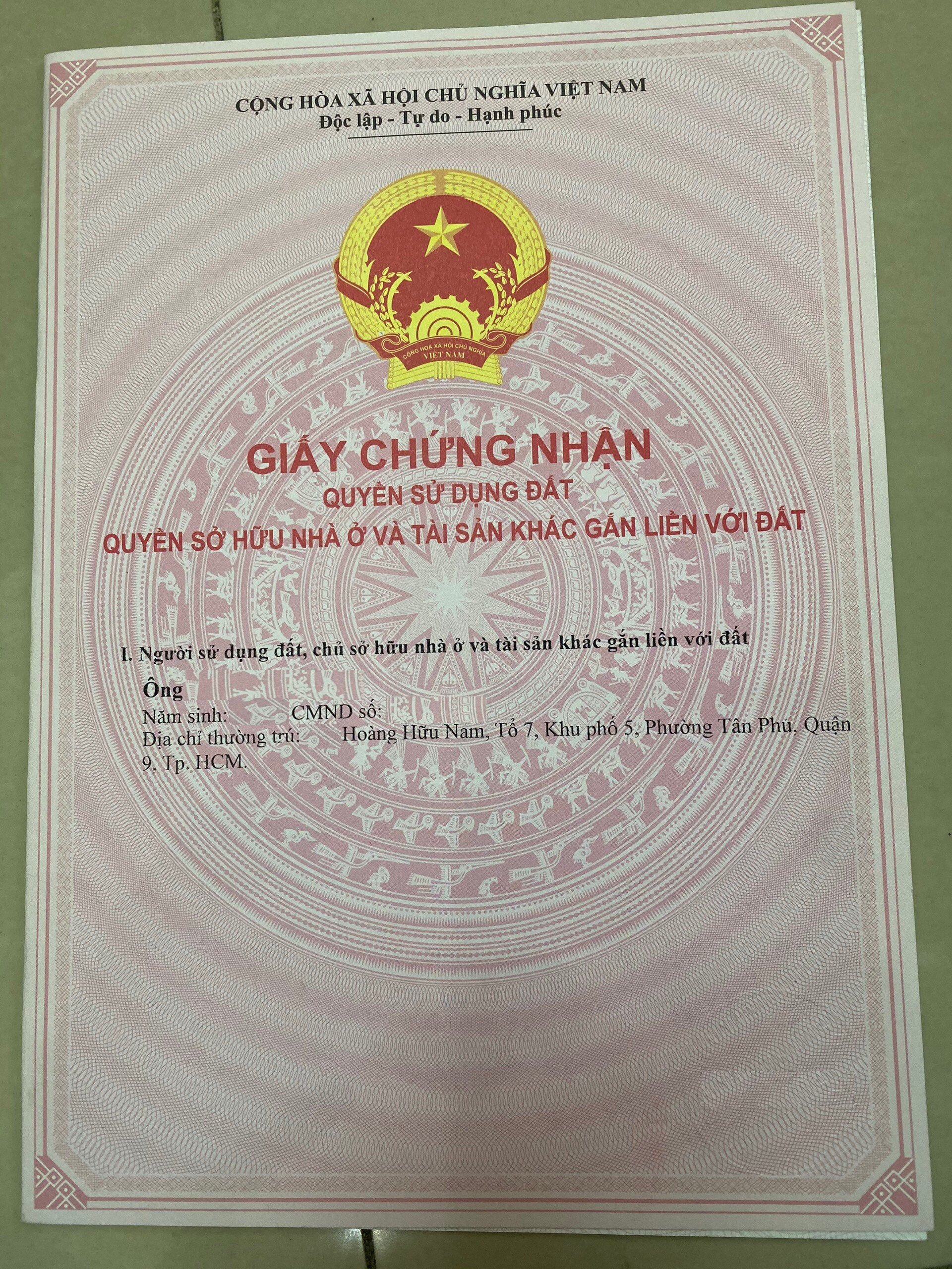 Địa chỉ tài sản: Đường Hoàng Hữu Nam, Phường Tân Phú, Phường Tân Phú, Quận 9, Hồ Chí Minh