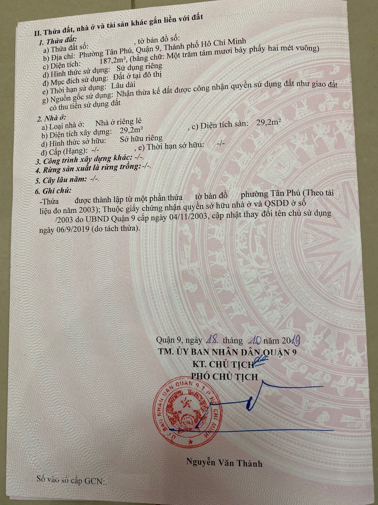 Diện tích đất công nhận: 187.7 m².