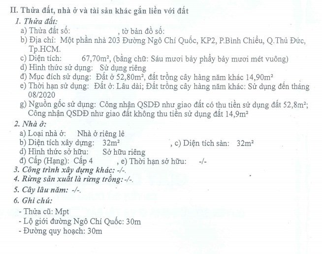 Địa chỉ tài sản: Đường Ngô Chí Quốc, Phường Bình Chiểu, Phường Bình Chiểu, Quận Thủ Đức, Hồ Chí Minh