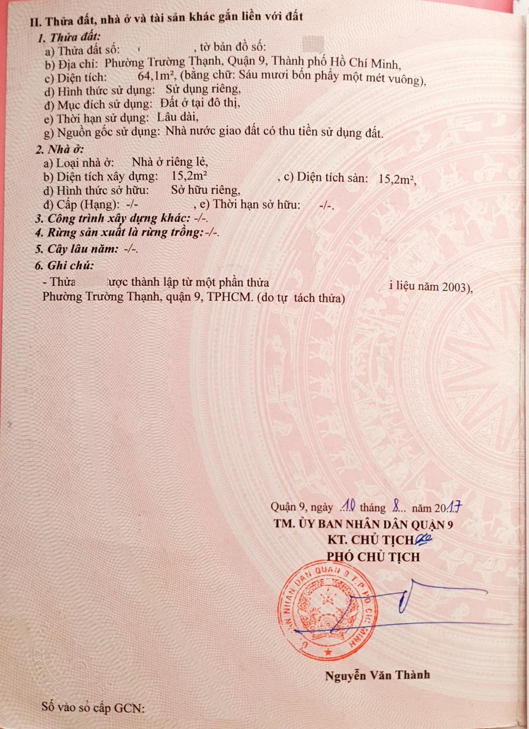 Địa chỉ tài sản: Đảo Kim Cương đường Long Thuận, Phường Trường Thạnh, Phường Trường Thạnh, Quận 9, Hồ Chí Minh