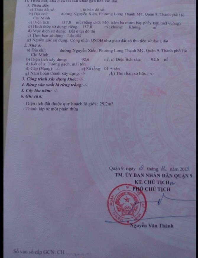 Địa chỉ tài sản: đường Nguyễn Xiễn, phường Long Thạnh Mỹ. , Phường Long Thạnh Mỹ, Quận 9, Hồ Chí Minh