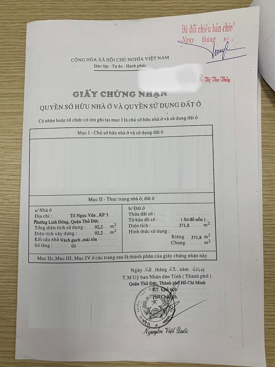 Địa chỉ tài sản: Đường Tô Ngọc Vân , Phường Linh Đông, Quận Thủ Đức, Hồ Chí Minh