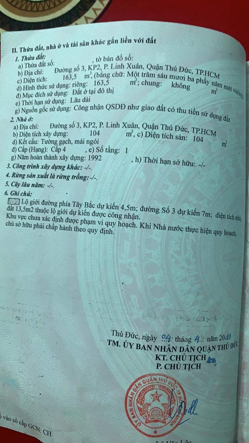 Địa chỉ tài sản: đường số 3, phường Linh Xuân., Phường Linh Xuân, Quận Thủ Đức, Hồ Chí Minh