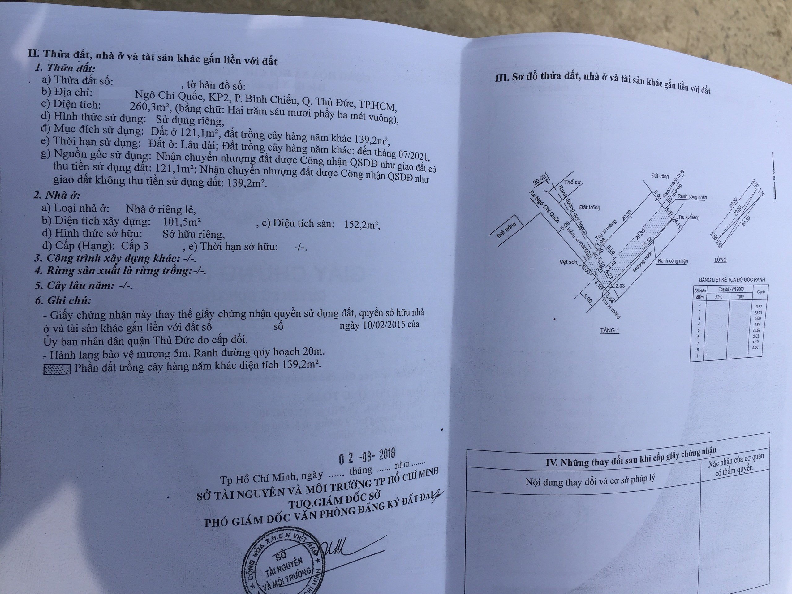 Trong đó: Đất ở: 121.1 m², đất trồng cây hàng năm khác: 139.2m²