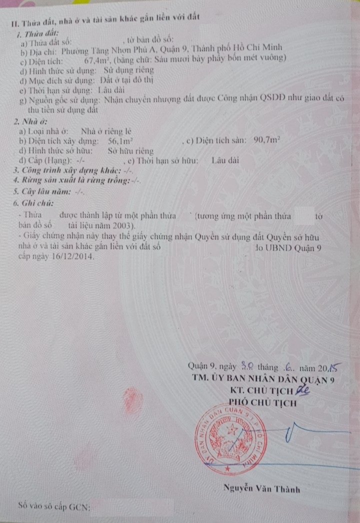 Địa chỉ tài sản: Đường 102, Phường Tăng Nhơn Phú A. , Phường Tăng Nhơn Phú A, Quận 9, Hồ Chí Minh