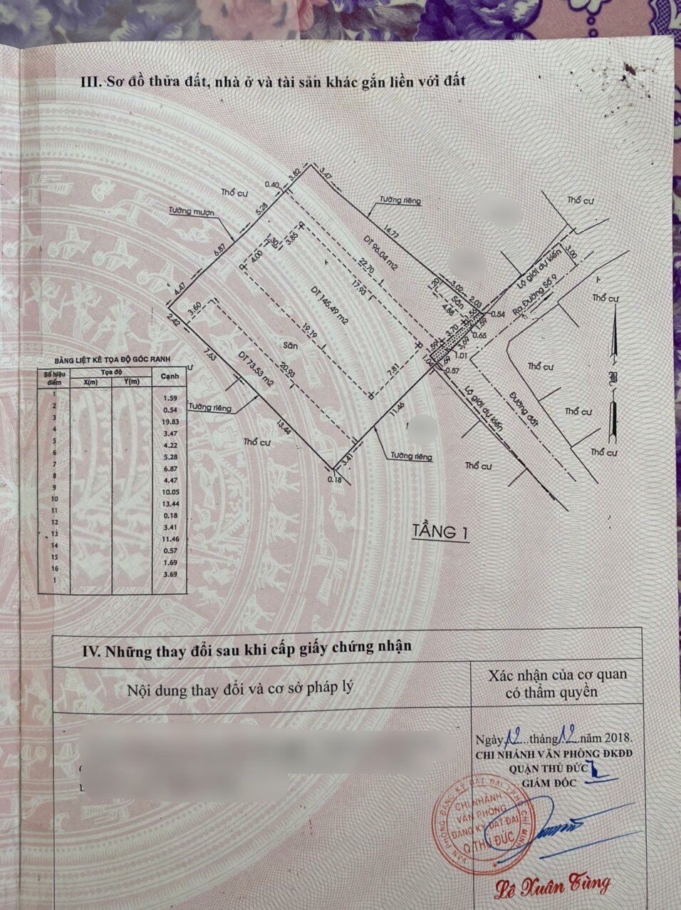 *Diện Tích đất công nhận: 503.6 m2 ngang 20.44 m x dài 23.4 m