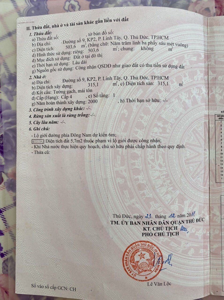 Địa chỉ tài sản: đường 9, phường Linh Tây, Phường Linh Tây, Quận Thủ Đức, Hồ Chí Minh