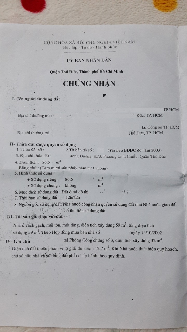 Địa chỉ tài sản: đường Chương Dương, phường Linh Chiểu, Phường Linh Chiểu, Quận Thủ Đức, Hồ Chí Minh