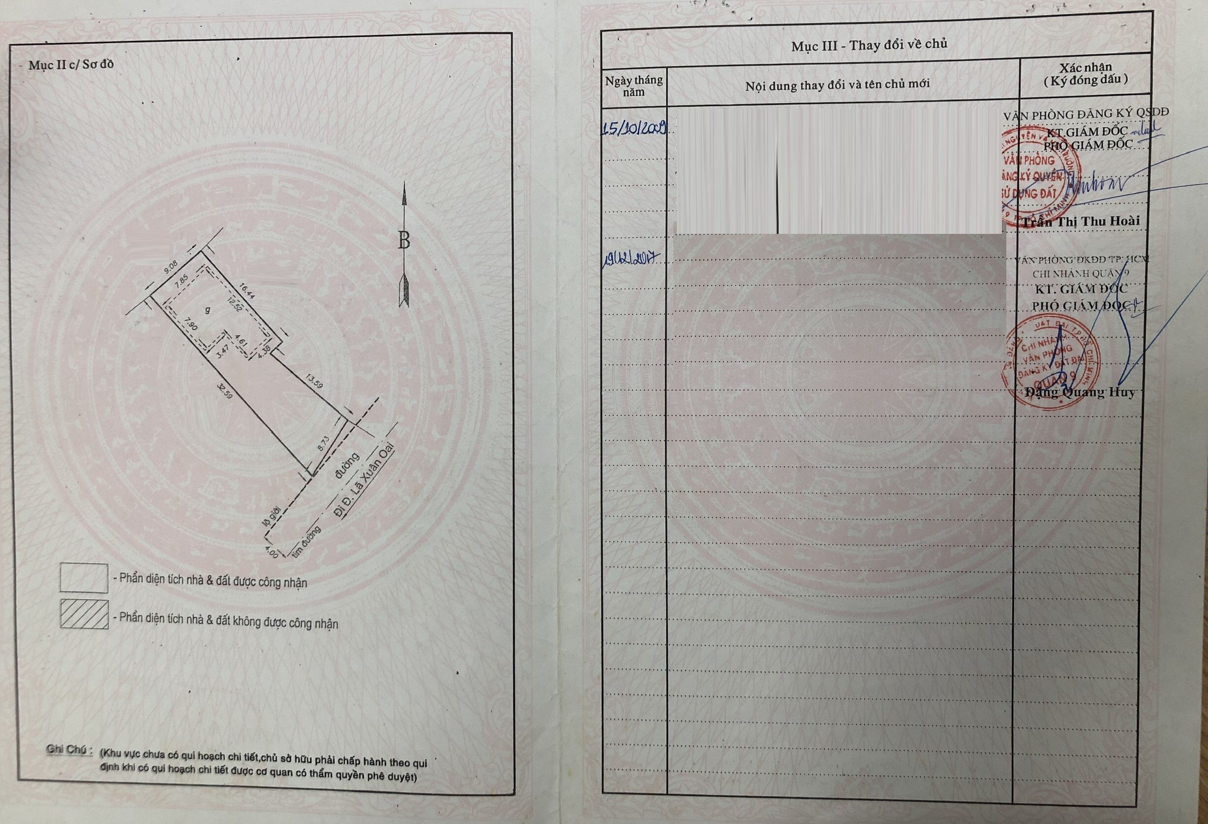 *Diện Tích đất công nhận: 264 m2 ngang 9.8 m x dài 26.9 m