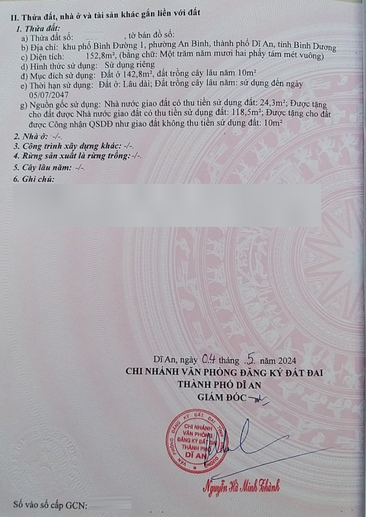 Địa chỉ tài sản: đường Nguyễn Tri Phương, Phường An Bình, Phường An Bình, Thị xã Dĩ An, Bình Dương