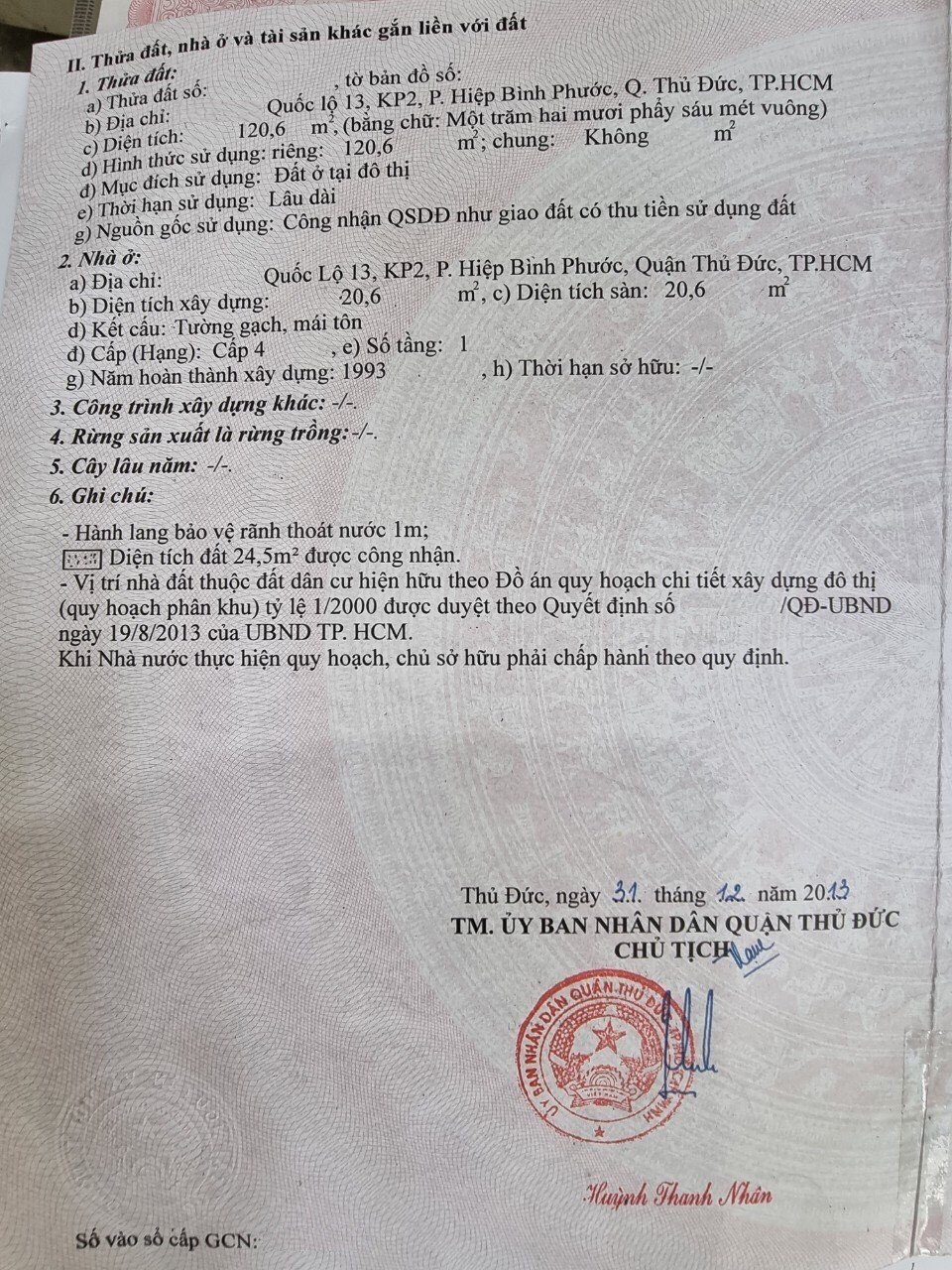 Địa chỉ tài sản: đường Quốc Lộ 13 , Phường Hiệp Bình Phước, Phường Hiệp Bình Phước, Quận Thủ Đức, Hồ Chí Minh