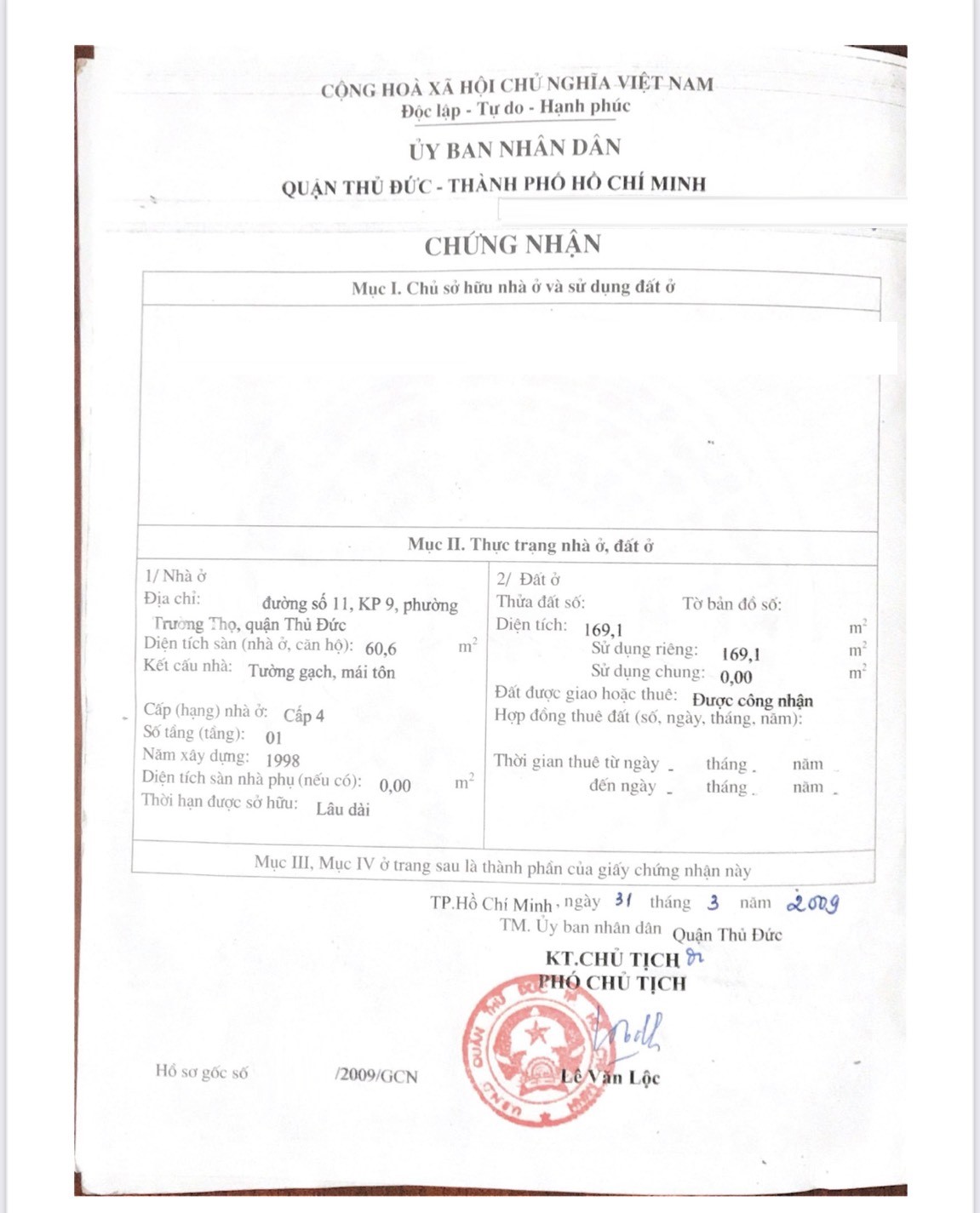 Địa chỉ tài sản: đường số 11, phường Trường Thọ, Phường Trường Thọ, Quận Thủ Đức, Hồ Chí Minh