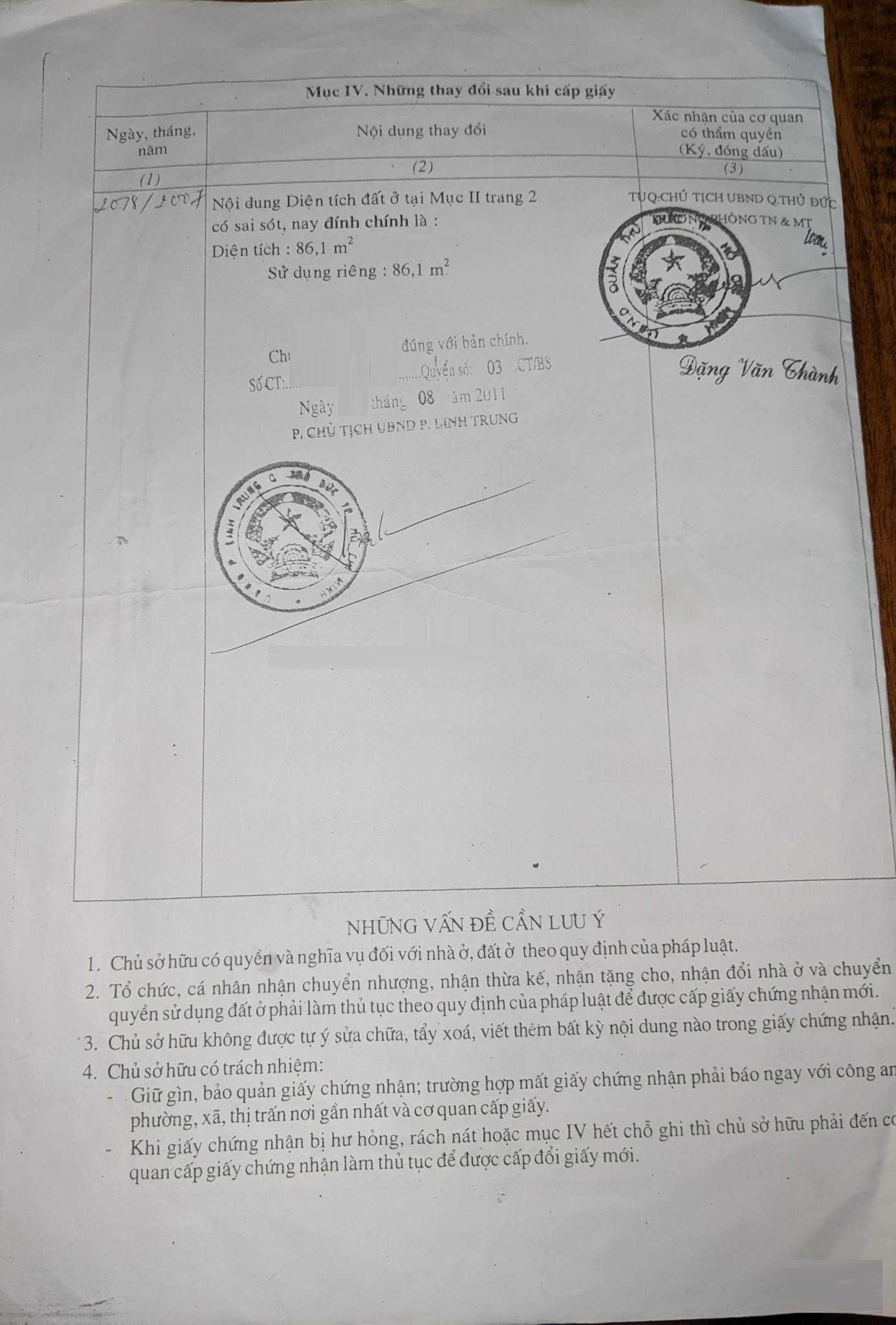 *Diện tích đất công nhận: 86.1m2. Ngang 4.48m x Dài 16.7m