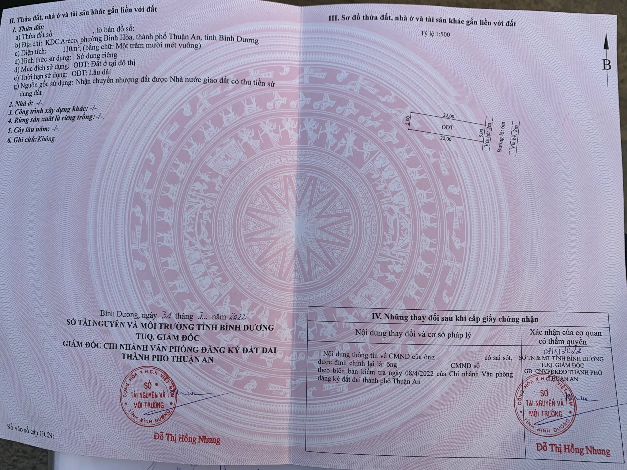*Diện Tích đất công nhận: 110m2 (ngang 5m x dài 22m)