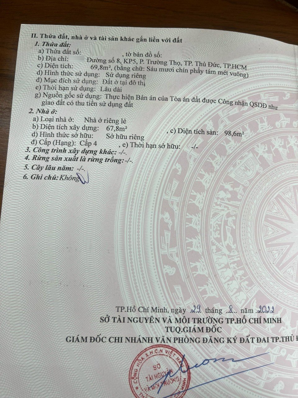 Địa chỉ tài sản: đường số 8, phường Trường Thọ, Phường Trường Thọ, Quận Thủ Đức, Hồ Chí Minh