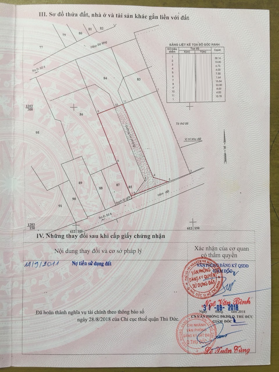 *Diện Tích đất công nhận: 1051m2 ngang 27.78 m x dài 38.16