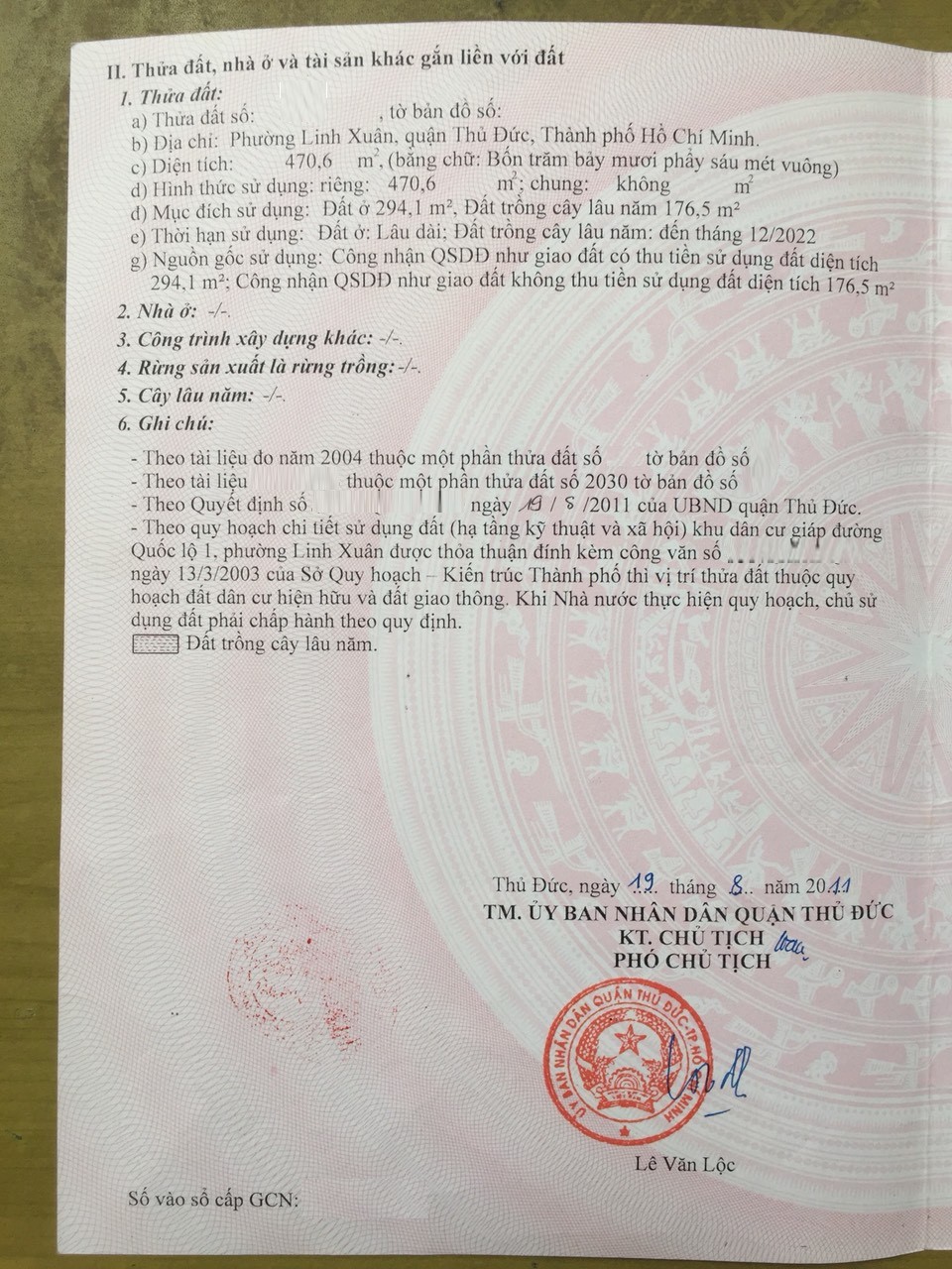 *Sổ 1: 470,6m2 ngang 12x Dài 38m, ODT: 294.1m2, CLN: 176.5m2