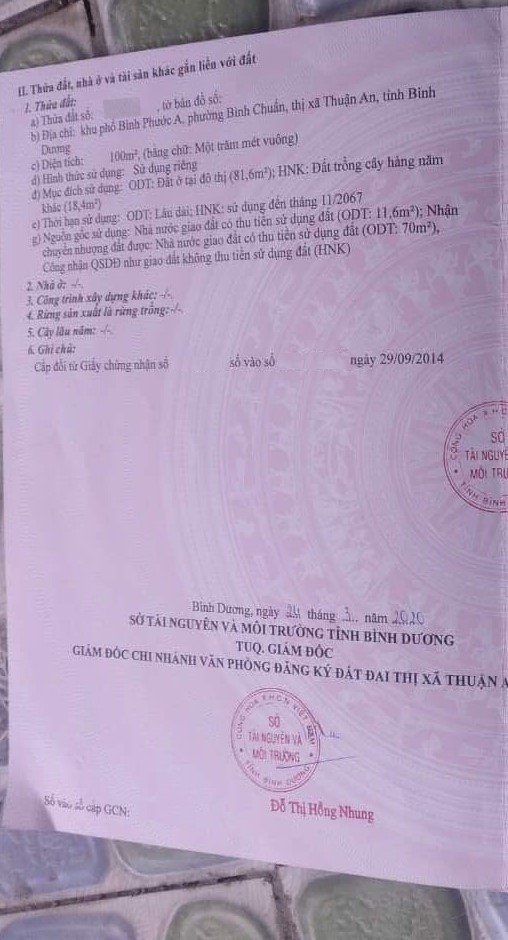 Note: 2 sổ diện tích như nhau, số thửa: 1432 và 1433, chủ gửi hình 1 sổ, còn sổ kia đang để ngân hàng, có khách thiện chí chủ đến xin sổ photo kia bổ sung.