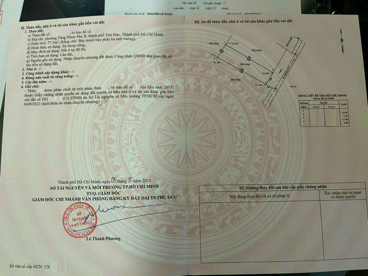 Diện tích công nhận: 77.3m2 ngang 4.3 m x dài 17 m