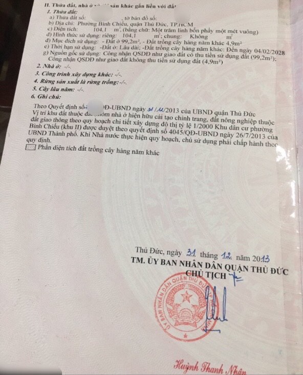 Địa chỉ tài sản: đường số 4, Khu Khiết Tâm, Phường Bình Chiểu, quận Thủ Đức, Tp.HCM., Phường Bình Chiểu, Quận Thủ Đức, Hồ Chí Minh