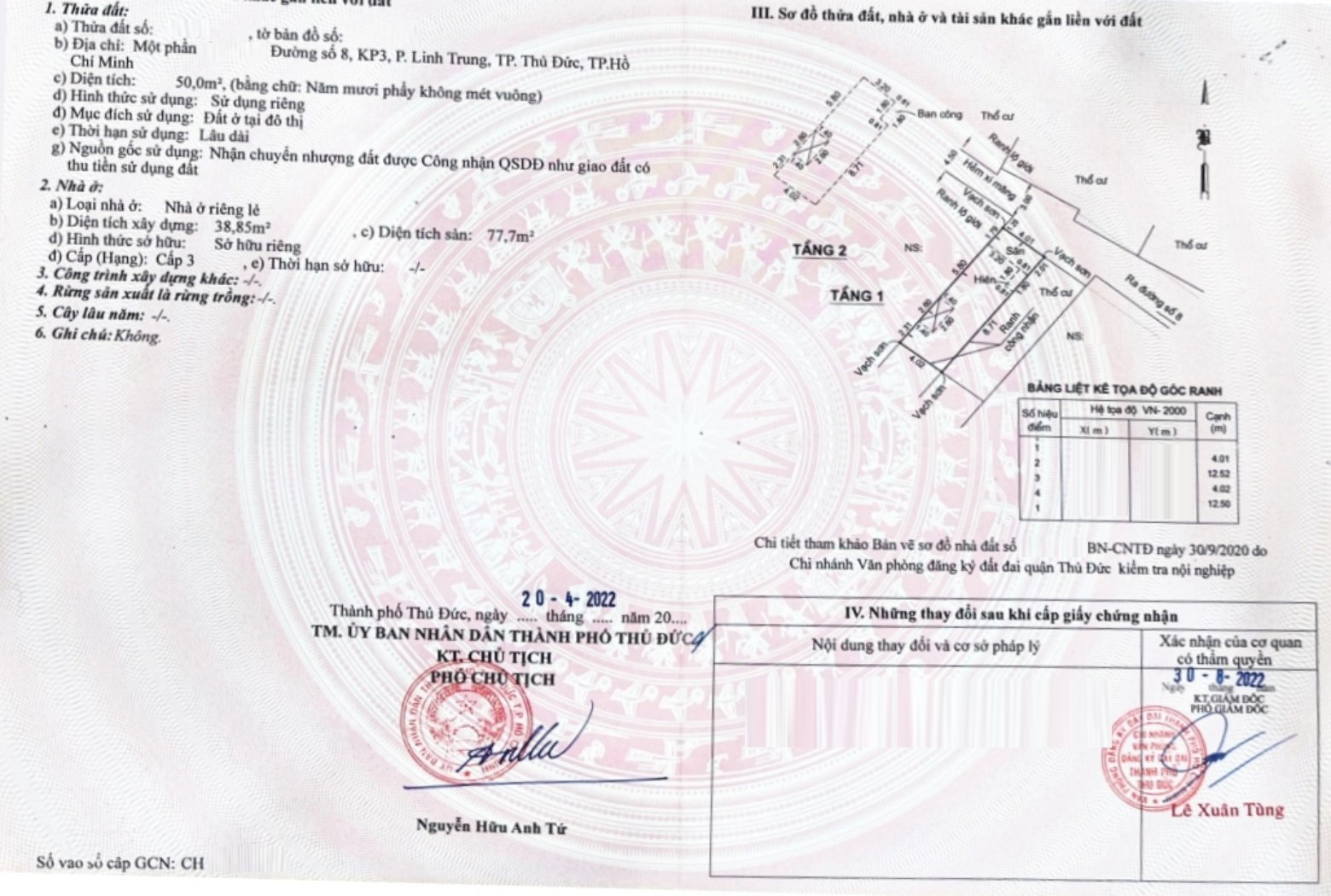 *Diện Tích đất công nhận: 50 m² ngang 4m