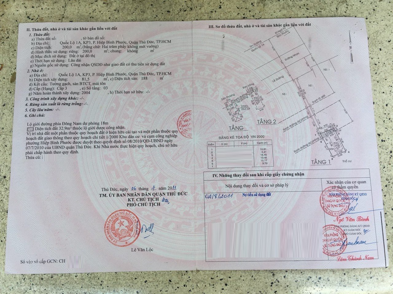 Địa chỉ tài sản: Quốc Lộ 1A, KP 3, P. Hiệp Bình Phước, TP Thủ Đức., Phường Hiệp Bình Phước, Quận Thủ Đức, Hồ Chí Minh