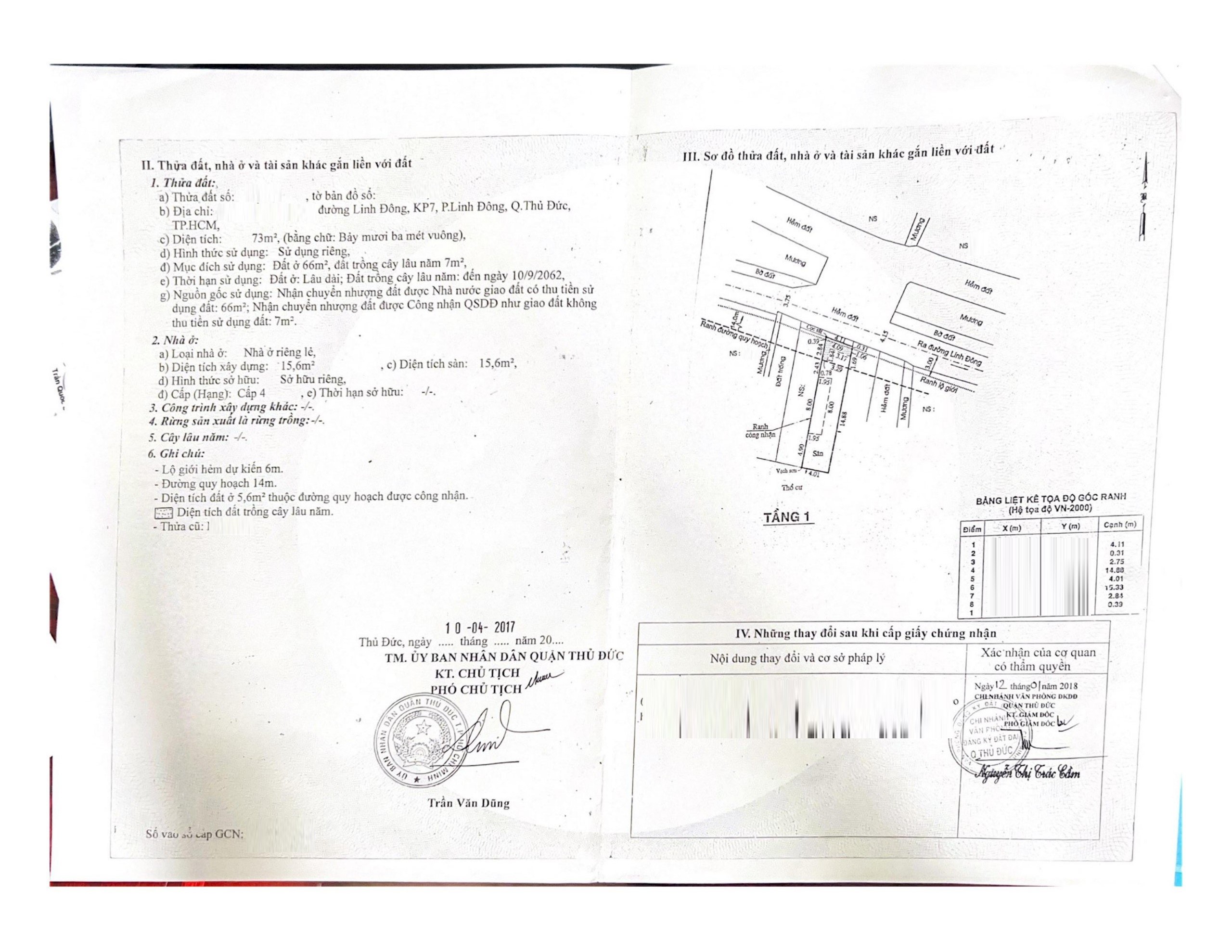 *Diện Tích đất công nhận: 73m2 ngang 4,1 m x dài 17,8m