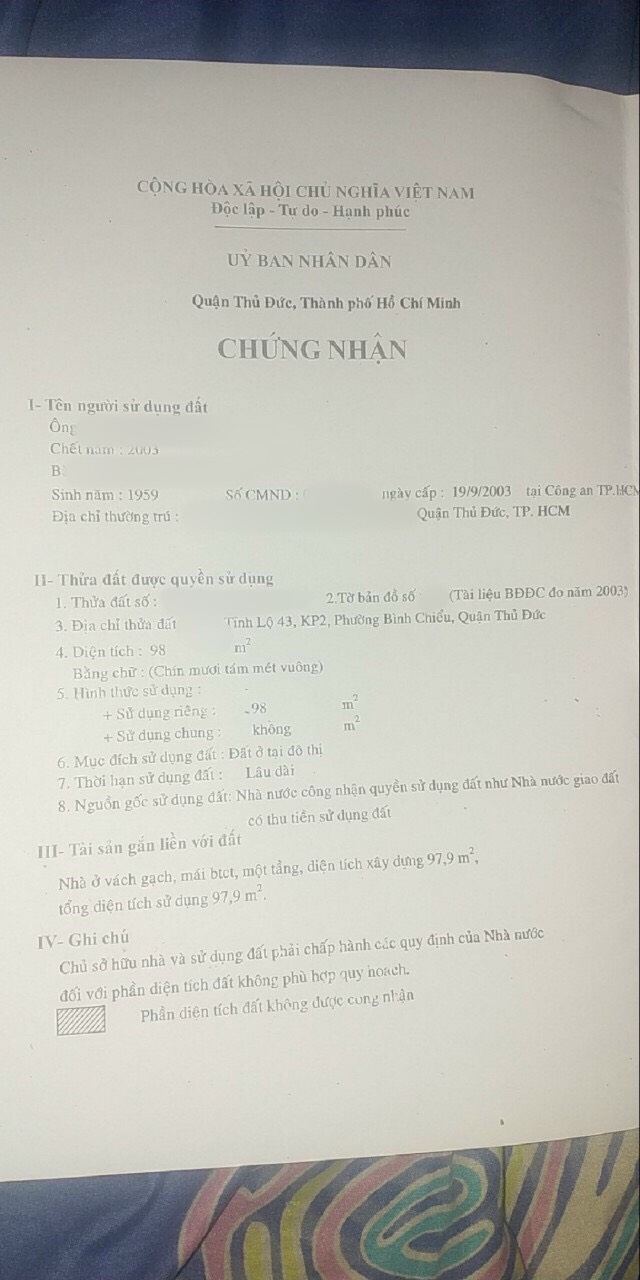 Địa chỉ tài sản: Đường Tỉnh lộ 43, Phường Bình Chiểu, Quận Thủ Đức, Tp Hồ Chí Minh, Phường Bình Chiểu, Quận Thủ Đức, Hồ Chí Minh