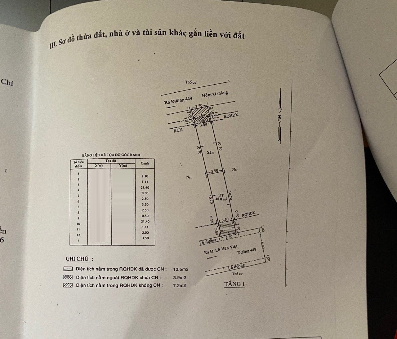 *Diện tích đất công nhận: 85.4m2. Ngang 3.5m x Dài 26.5m.