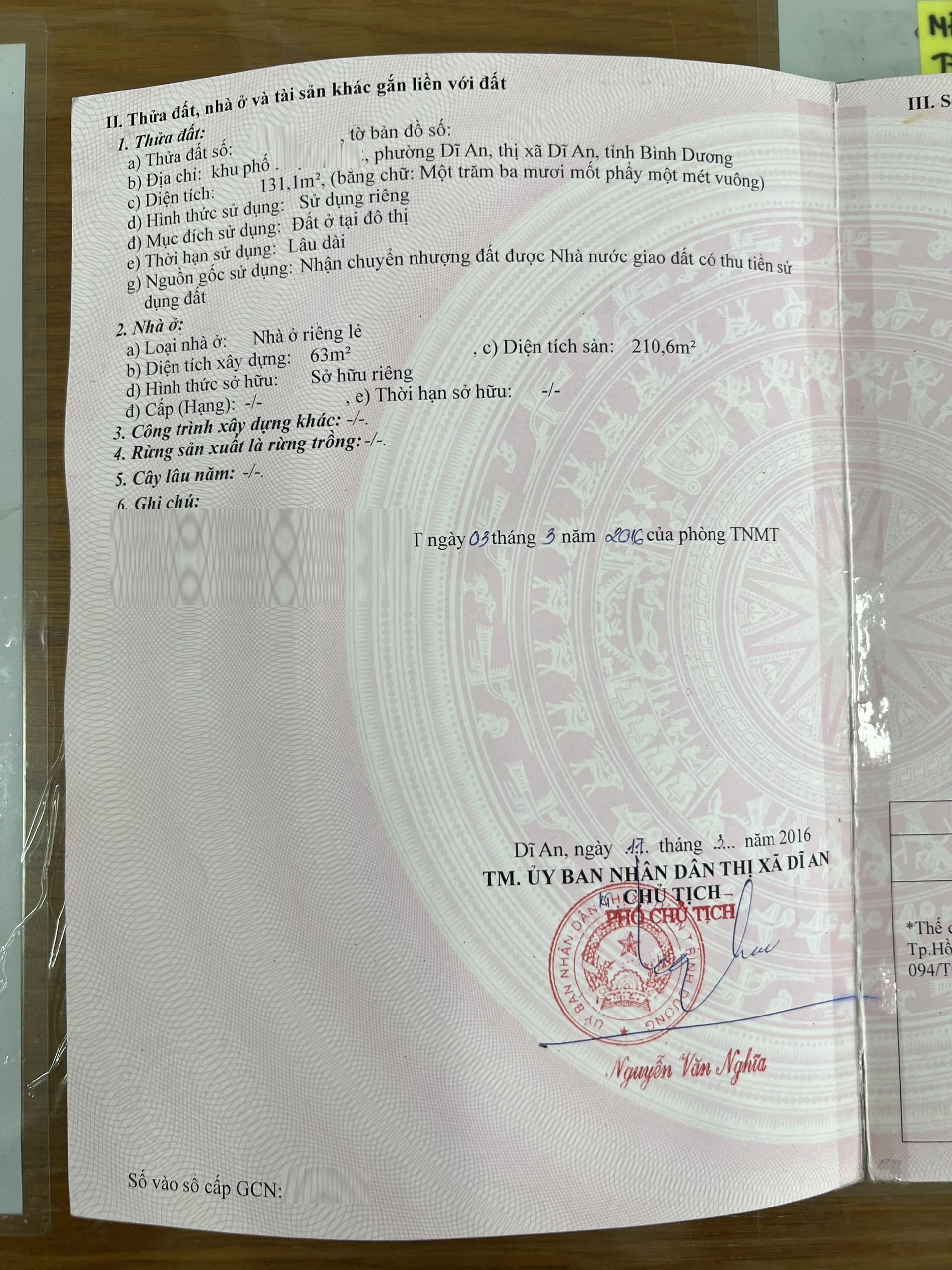Địa chỉ tài sản: đường số 1 , Phường dĩ an, Phường Dĩ An, Thị xã Dĩ An, Bình Dương