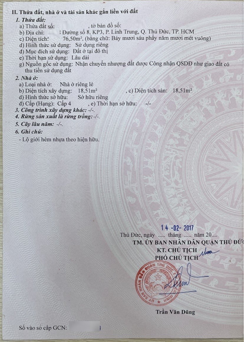 *Diện Tích đất công nhận:  76.5m2 ngang  4.6m x dài  16.5m