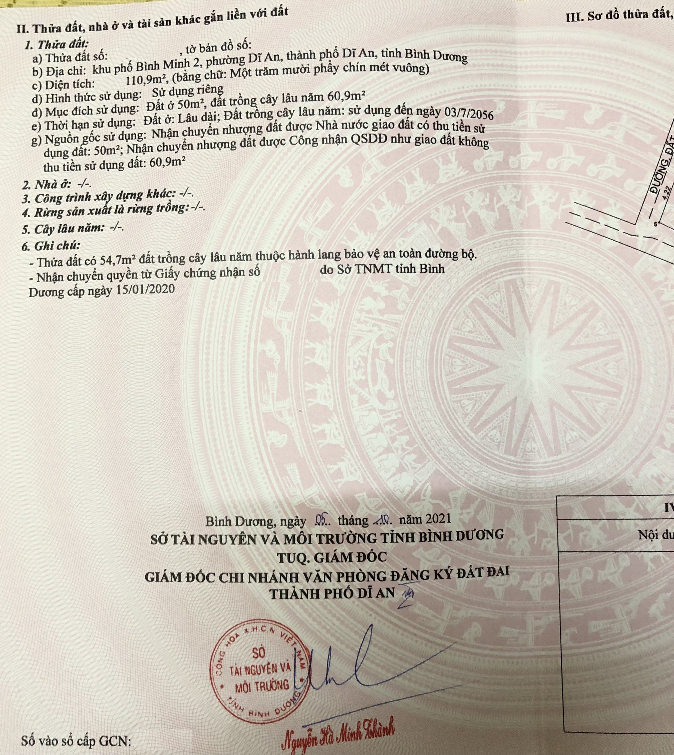 Địa chỉ tài sản: đường Ngô Văn Sở, Dĩ An, Phường Dĩ An, Thị xã Dĩ An, Bình Dương