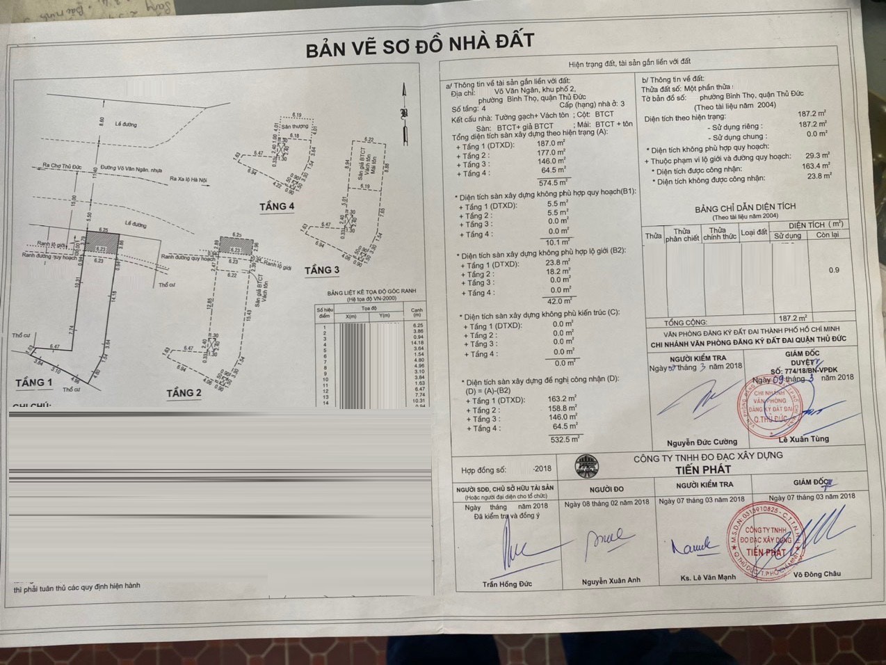 – Diện tích đất công nhận: 163.4m2 ngang 6.25m, dài 28m, nở hậu chữ L