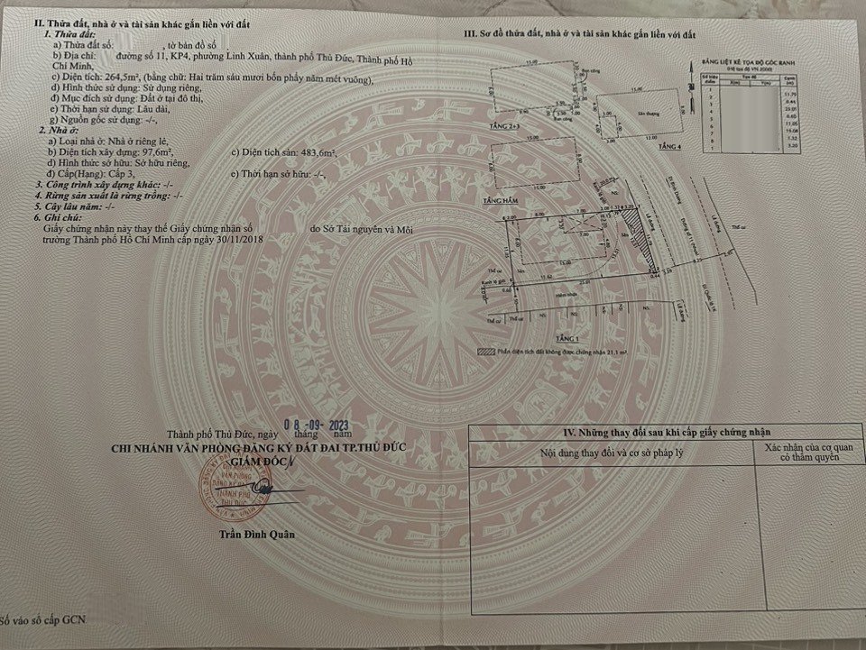 *Diện tích đất công nhận: 264.5m2. Ngang 11.79m x Dài 25m