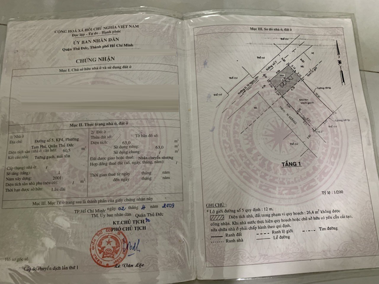 *Diện tích đất công nhận: 63m2. Ngang 6.04m x Dài 13.5m.