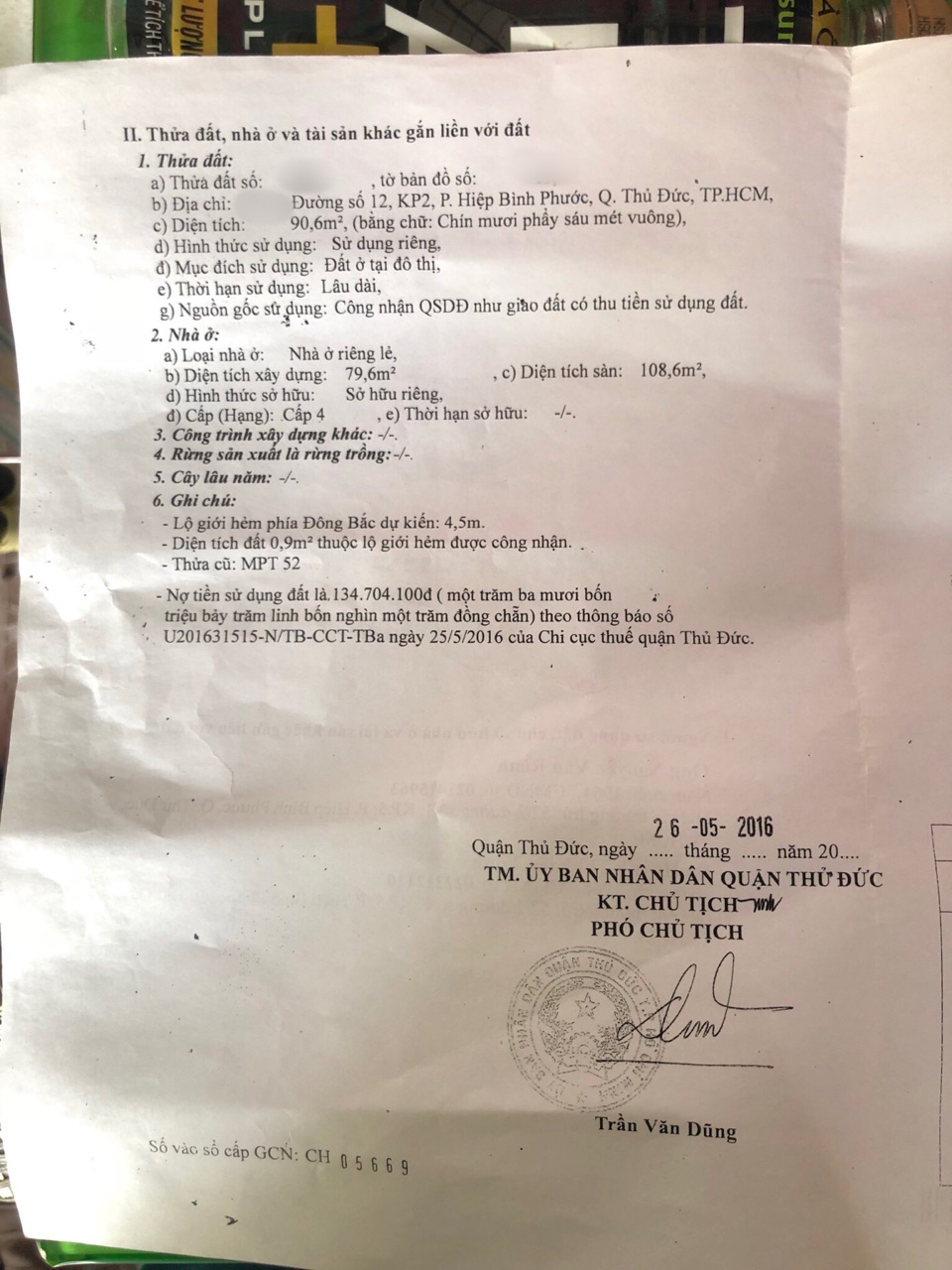 Địa chỉ tài sản: Đường số 12, HBP, Phường Hiệp Bình Phước, Quận Thủ Đức, Hồ Chí Minh