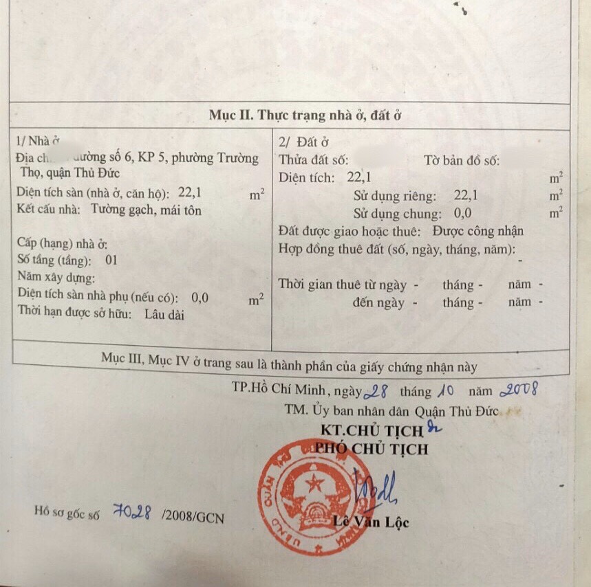 Địa chỉ tài sản: đường số 6,Phường Trường Thọ,Thủ Đức, Phường Trường Thọ, Quận Thủ Đức, Hồ Chí Minh
