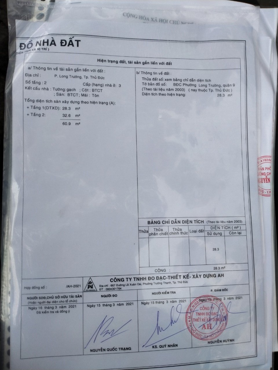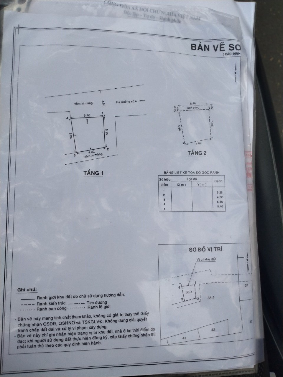 *Diện Tích đất công nhận: 28.3 m2 ngang 5.4m hậu 4.8 m x dài 5.2 m