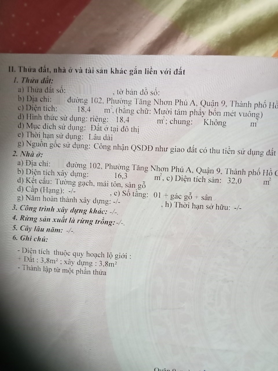 Địa chỉ tài sản: đường 102 phường Tăng Nhơn Phú A, Phường Tăng Nhơn Phú A, Quận 9, Hồ Chí Minh
